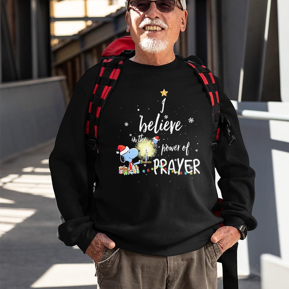 And and they win it tip your hati mean that’s what great players are supposed to do but everybody left that stadium going that team was good enough to win a Santa Snoopy And Woodstock I Believe In The Power Of Prayer Christmas Shirt super bowl and that’s what you play for is you play to make people believe what you’re capable of or what the possibilities were and that’s what that season signified or that time period signified for me and it was so great because you know the place was left and fans and people around the league saw the organization completely different than when I got there and that’s as a leader that’s you know at the end of the day wins and losses i’m not going to gauge it all on that it’s how you left the place compared to what it was like when you got there. Yeahyou know. My last yankee box this is like a you know allstar game slash uh special edition whatever so it looks like an only yankee bagbut it’s got the inaugural online we got the stars and stripes we got the gold version for el capitano uh piers favorite shortstop right there. Yeahhe does have the money the question is and it all comes down to tv dollars if they had a huge tv contract that’s why the bay area is the fourth largest television market it’s all about how many eyeballs can we get on our product on tv correct and only being in 12 markets those contracts are very small that’s what’s pulling the freight on paying the salary right if they can ever bust out and be in some big tv markets and get good numbers they would get a big contract and that would never be a problem because I agree with you a first round draft pick should never get cut because they can’t fit in under the salad they’re not going to cut the talent again well for finances you’re victim of your own success right couldn’t you put a team in san francisco and another in oakland we couldn’t yeah. One o’clock in buffalo uh jim again it’s another it’s another big game against a team that a lot of people think is one of the top three teams in the nfl after the offseason they’ve had oh I think so um and a lot of pressure on them coming into this season no doubt about it because they have been close uh to getting to where they ultimately want to get to umand I think that their feet you know they don’t want to be termed as one of these teams that just could never get over the hurdle. And I think any time any kicker maybe a good strategy is to you know try and get the ravens to to play a game of cat and mouse you know the steelers go give chris boswell uh a recordsetting deal of course the ravens are gonna jump againso uh maybe it’s maybe shoot yourself in the foot to get your opponent to shoot themselves in the foot to an extent. But that Bengals game showed me the focus of this team so I don’t think how ball really needs to change anything you need to just keep doing whatever they’ve been doing and just keep them focused keep them grounded keep them levelheaded do not let them get ahead of themselves like they’ve been doing fans again I always think it’s so funny fans they can get ahead of themselves already want to they can talk about all they thinking about this game that game that get anything about the game down the road they can do all that they can do that all they want to you never want to be a cocky fan anything like that but you can be thinking about a game that’s 2 4 four five six weeks away that’s fine because you don’t have any impact on a team or what their focus is cuz I know a lot of fans think that a lot of fans think likea alright.